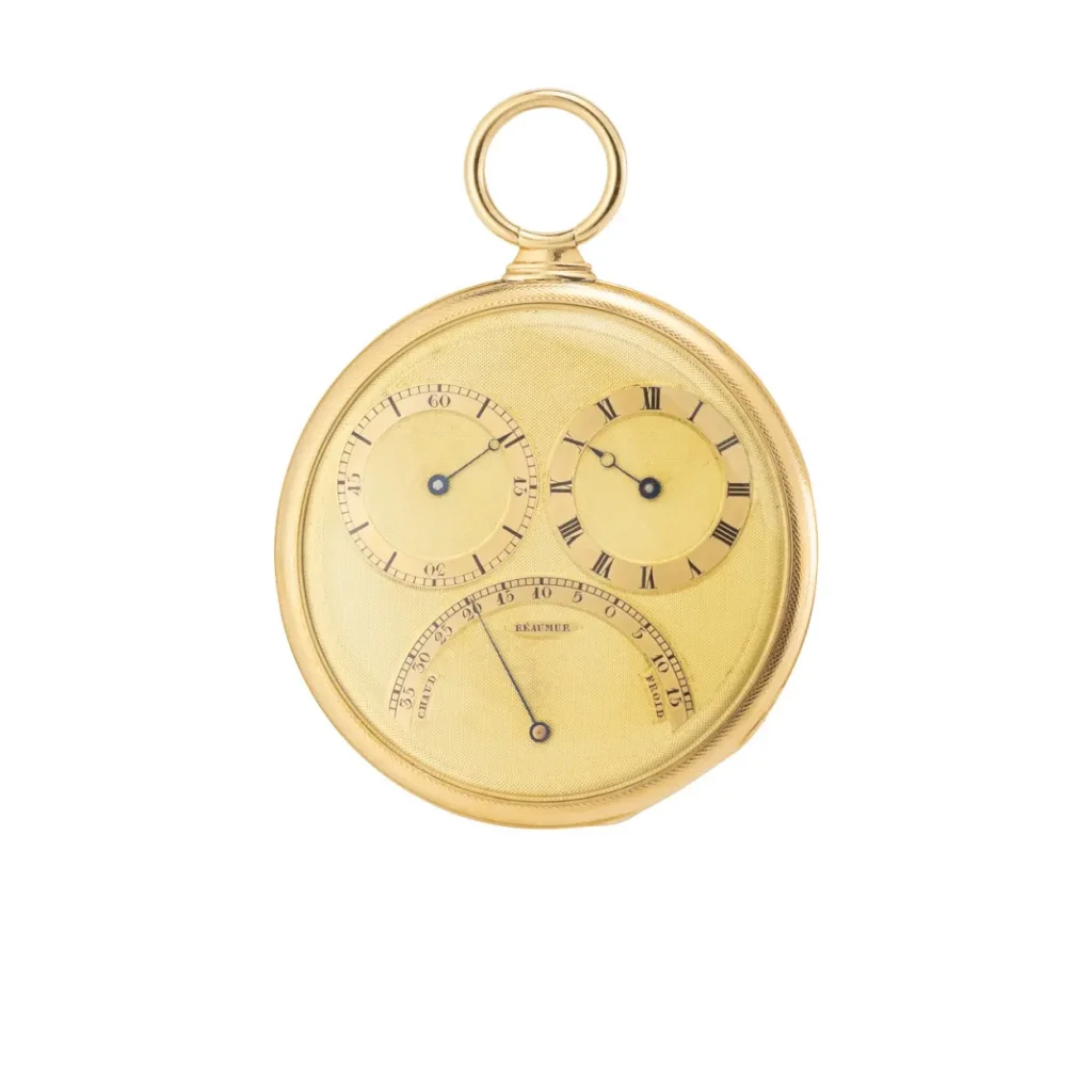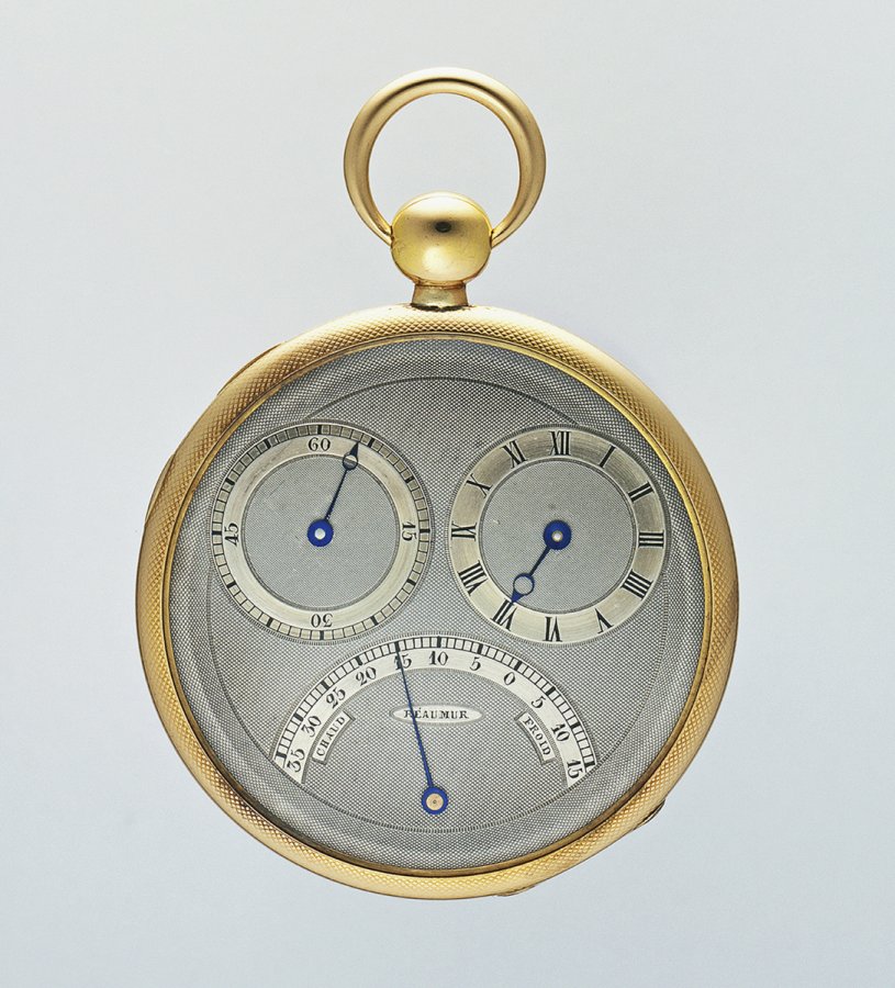 Ultra-thin Pocket Watch with lever escapement and regulator dial with hours, minutes, seconds and bi-metallic thermometer display in Réaumur